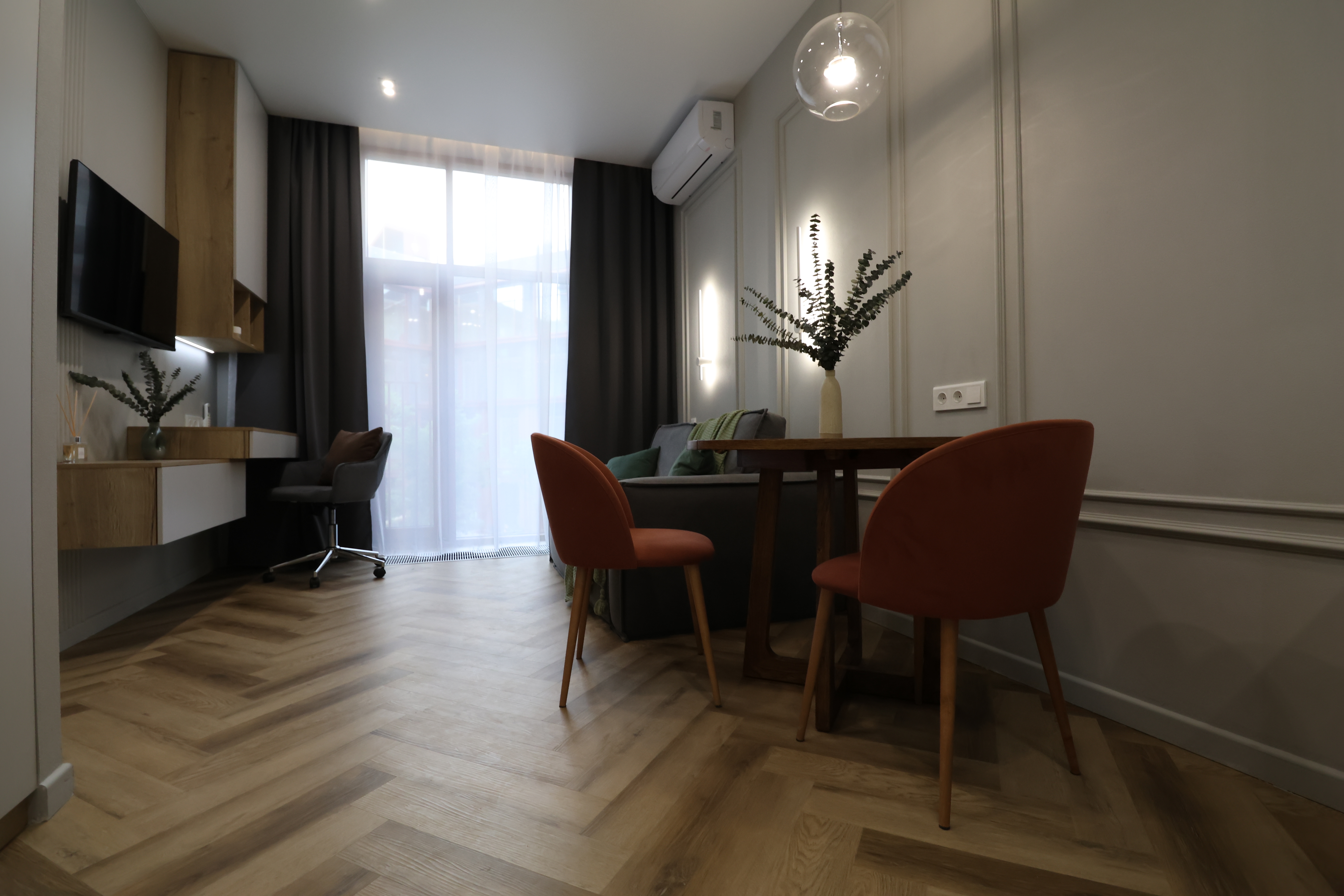 Главная идея была в том, чтобы сделать оригинальный стильный интерьер, но использовать базовые цвета в отделке, мебели и текстиле
