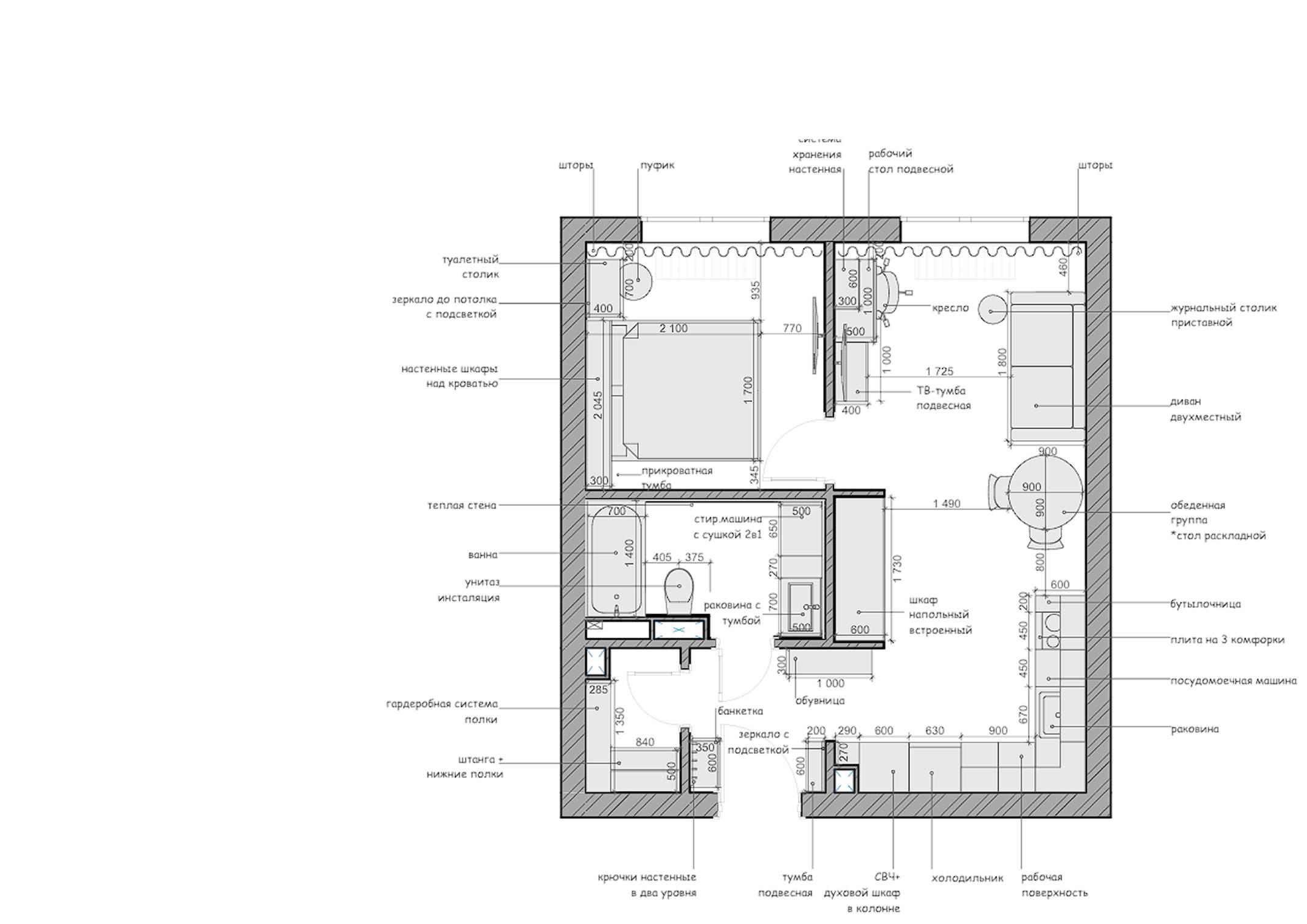 Тип проекта: полный комплект чертежей с визуализацией и подбором мебели